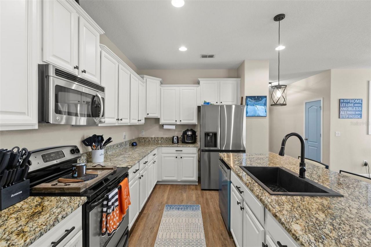 Welcome to your turn-key Florida oasis in the premier resort-style community of Belmont! This stunning 4-bedroom, 3-bathroom home offers ultimate peace of mind with a BRAND NEW ROOF featuring a transferable warranty. The open-concept chef's kitchen shines with granite countertops, stainless steel appliances, and freshly painted cabinetry, flowing seamlessly into the bright living space. Privacy is perfected with a smart split-floor plan, including a spacious primary retreat with dual walk-in closets and a secluded 4th bedroom with its own en-suite bath-an ideal setup for a guest suite, multi-generational living, or a quiet home office. Step outside to your extended screened-in lanai and fully vinyl-fenced backyard, perfect for enjoying the Florida sunshine in private. Out-of-state buyers will love the staycation lifestyle Belmont provides, featuring two resort-style pools, tennis and basketball courts, a dog park, and scenic trails, all while being walking distance to the on-site elementary school and a brand-new Publix. Perfectly situated for commuters, you are just 30 minutes from Downtown Tampa and MacDill AFB, and 35 minutes from the world-renowned Gulf beaches. Avoid the wait of new construction and move right into this upgraded gem-schedule your showing today!